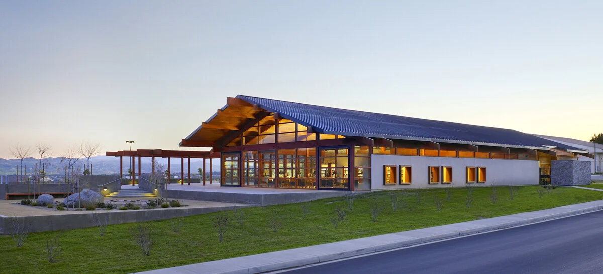 Riverside, CA Planned to blend into the natural landscape of the community, the library was the first LEED certified building constructed by the county of Riverside. This project is a model of sustainable site development, water savings, energy efficiency, sustainable materials usage, and indoor environmental quality.
